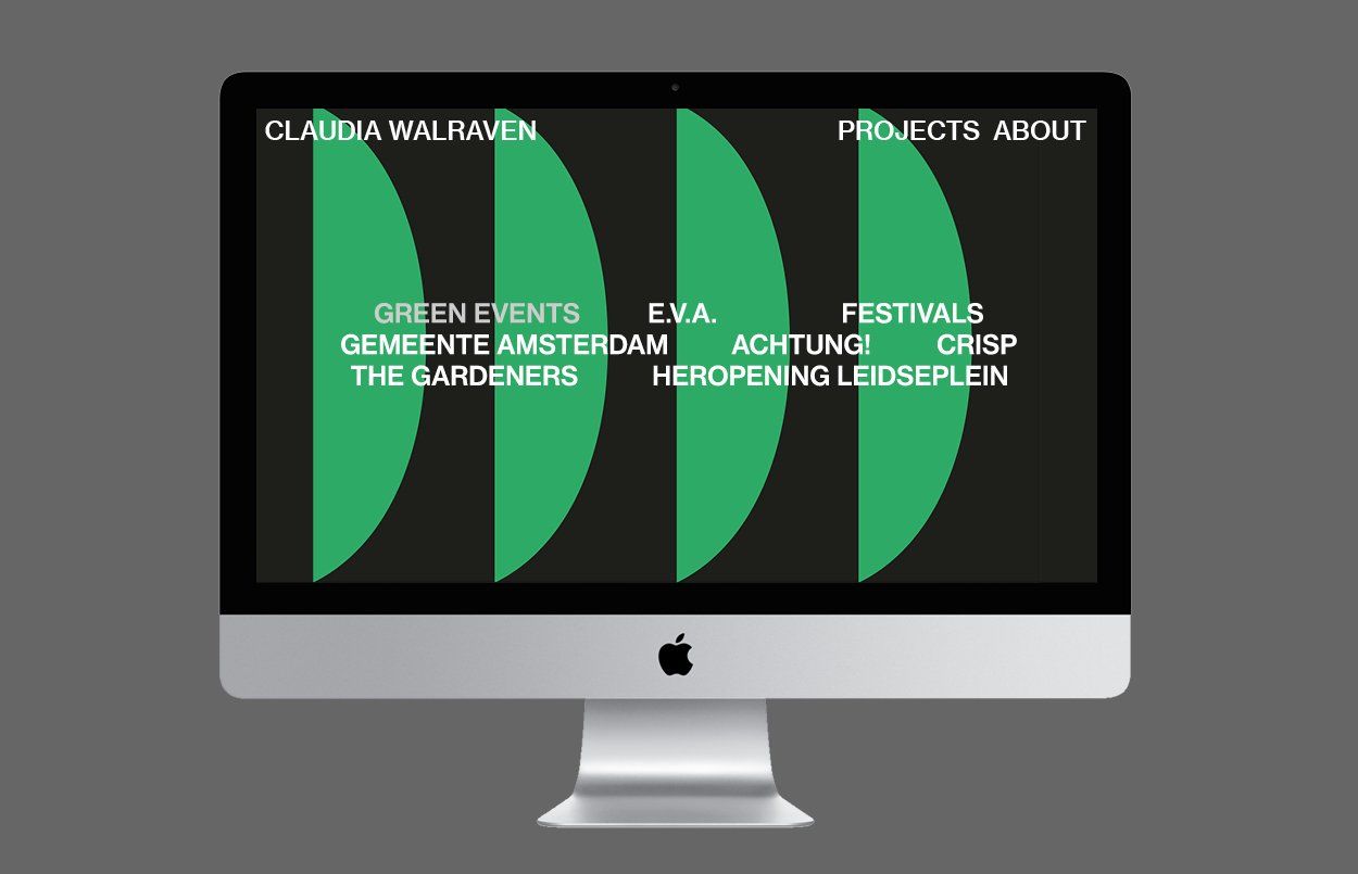 Claudia Walraven is a a producer for festivals and is concerned with sustainability. We designed an identity for her based on the idea of zero waste and recycling. Using the spare space inbetween the letters as shapes to create new output. Also showing her organisational capabilities. www.claudiawalraven.com